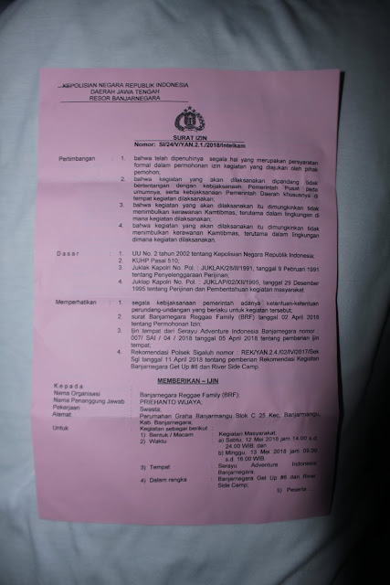 Dasar : Juklap Kapolri No. Pol / 02 / XII / 95 tentang perijinan dan pemberitahuan kegiatan masyarakat