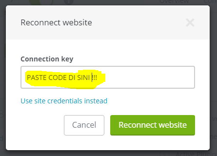 6. Copy Connection Key yang tersedia kemudian buka tab baru, buka managewp.com , login dan cari namadomainanda.com
