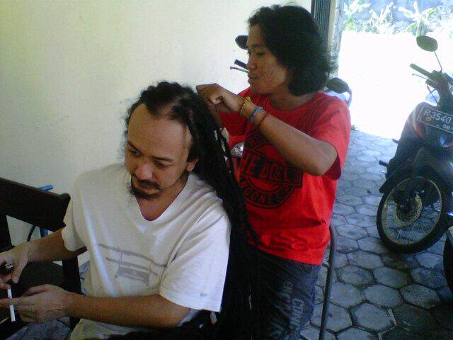 | proses service rambut gimbal Ras Muhammad saat mau manggung di acara Jogja Reggae Fest tahun 2013 |