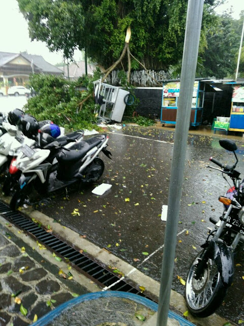 SELAMATHARIAIR.COM – Siang ini, rabu (08/11/2017) mendadak story instagram, whatsapp dan postingan di group Info Cagatan Banjarnegara dipenuhi dengan foto dan video hujan dan angin lebat di Banjarnegara yang membuat beberapa pohon dan reklame iklan tumbang, begitupun dengan pohon beringin besar yang terletak di tengah alun-alun Kota Banjarnegara. Hanya bisa memantau lewat sosial media dan chat beberapa orang yang mengetahui info lebih karena posisi saya sedang di kontrakan ( di perantauan ).